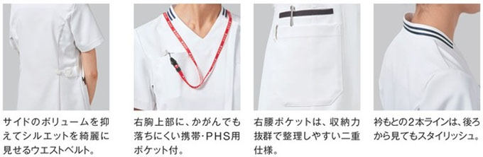 現在では、白衣・介護・ナース服・メディカルウェアを中心とし、受付・事務服オフィスウェア、エステユニフォーム、メディカルシューズ、クッキング・サービスユニフォーム、食品工場、飲食店用のウェア、作業用・ワークウェア等様々なユニフォームを取り扱っております。