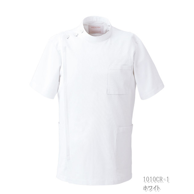 ベーシックなデザインの男性用ケーシー。腕の動きを楽にするアームホールリブは身頃と袖をつなぐ部分に伸縮性の高いリブ網みを採用。