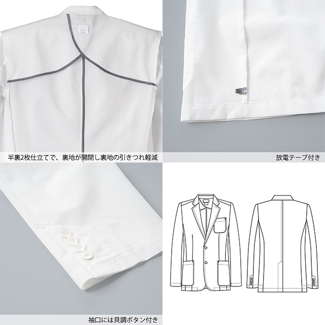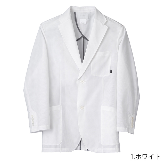 超軽量の男性用ドクタージャケットは新しいクールビススタイル。使用している生地は通気性の良い、穴あきの素材で、撥水加工が施され穴あきでも水を弾く機能性素材です。ストレッチ性にも優れているので、スクラブや白衣の上にコートを羽織っても動きを妨げることなく、さまざまな動きに柔軟に対応してくれます。薄いくて軽い素材ながら本格的なテーラード仕上げになって、スタイリッシュな印象になっています。