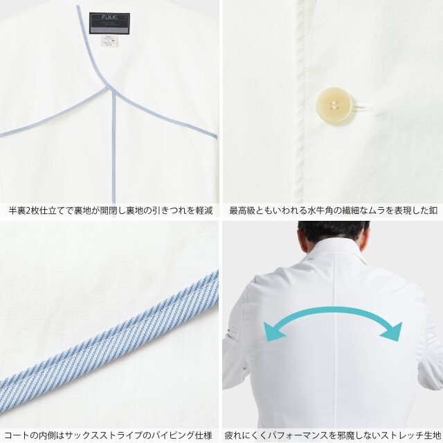 生地自体が柔らかく、ストレッチ性があり着心地抜群。半裏2枚仕立てで、裏地が開閉し裏地の引きつれが軽減するので動きやすく快適です。