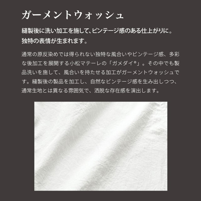 高級感のある生地に、洗い加工でこなれ感をプラスしました。