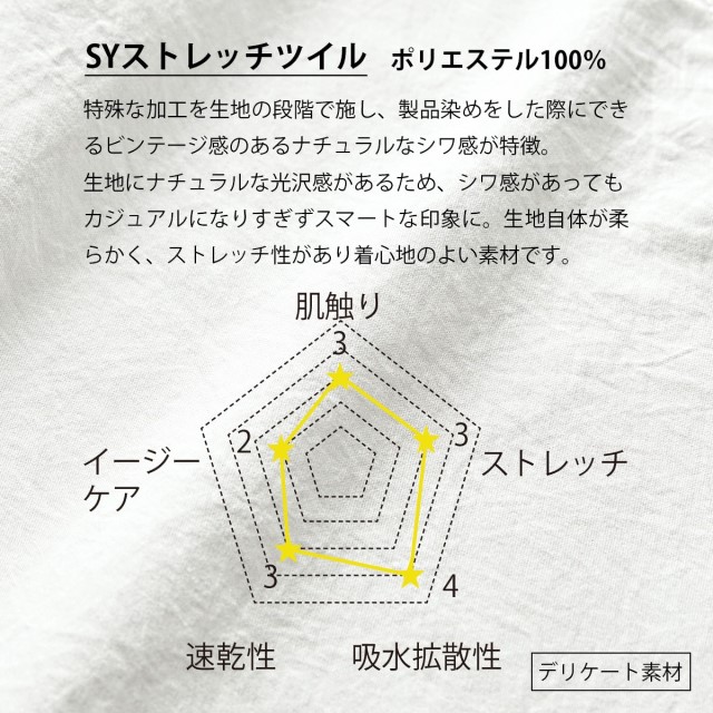 ●素材:SYストレッチツイル(ポリエステル100%)※デリケートな素材のため、お取扱いにはご注意下さい。
