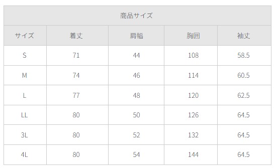 ●サイズ:S M L LL 3L 4L