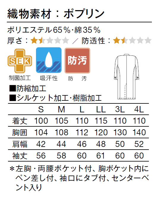 ●仕様:左胸・両腰ポケット付き 胸ポケット内にペン差し付き 袖口にタブ付き センターベント入り