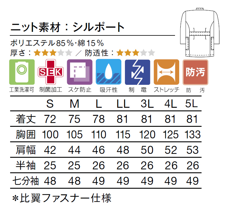 ●機能:工業洗濯可 制菌加工 透け防止 吸汗性 制電 ストレッチ 防汚