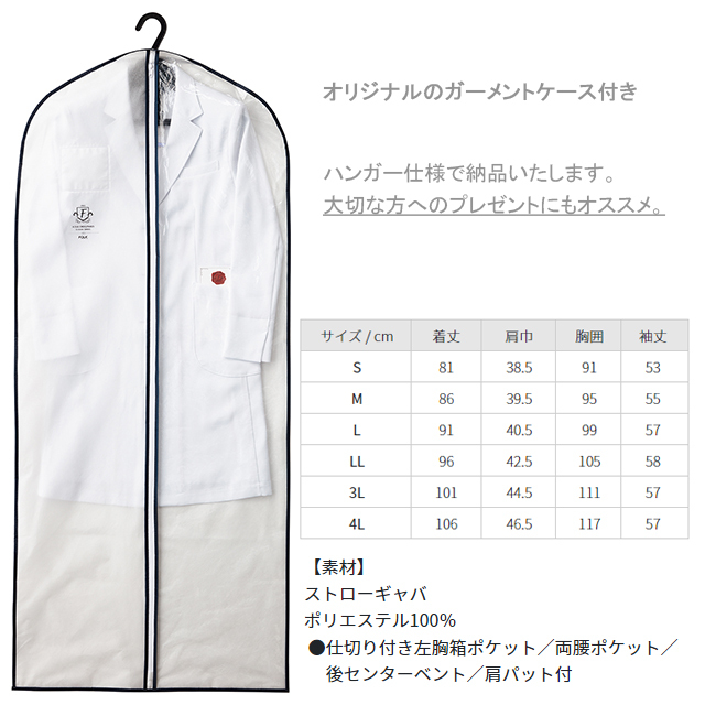 数多くのアパレルブランドから注目されるMADE IN JAPANの小松マテーレの機能性・素材を使用した、フォークの高級ライン「Fシリーズ」。 その日の気分でメイクや髪形を変えるように、白衣も着心地や見た目の印象を変えて着ることが出来るレディスドクターコートが登場。 取り外し可能な薄手の肩パッドを付けることで肩回りの印象アップ。体型や気分によって付け外しが可能。すっきりとした女性らしい小ぶりな衿は、デコルテから首元の印象を軽やかにしてくれます。裏側まで美しいブルーストライプのパイピング仕立てで、他と差のつくオシャレなドクターコートです。 診察時に邪魔にならないリターン仕様の袖口、やや深めのパッチポケットは裏地付きでしっかりとした作りに。デザインはもちろん、機能性も抜群のレディ-スドクターコートです。