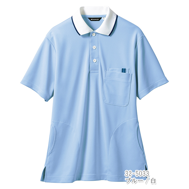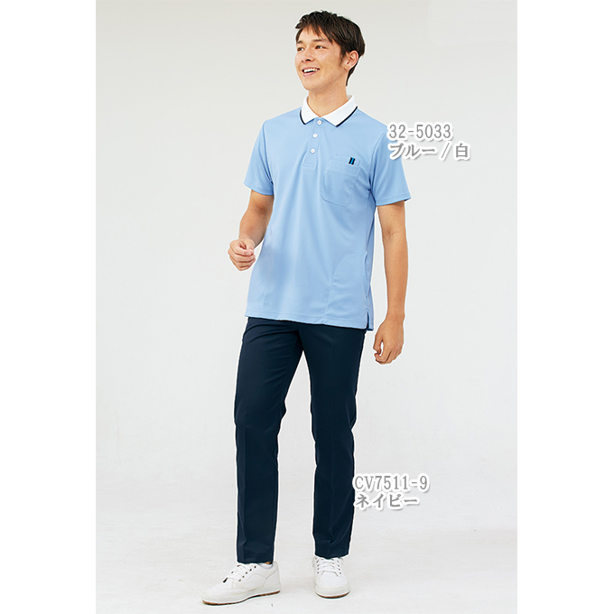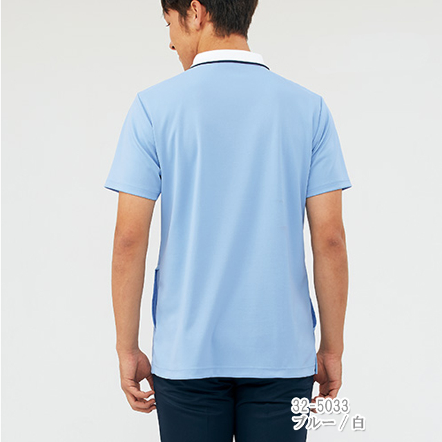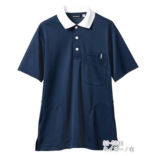 さわやかな白襟ポロは、両腰と胸元にポケットを配し、汗をかいてもドライな肌当たりの吸汗速乾タイプ。汚れが付きにくく落ちやすい防汚加工に高度な制菌加工までプラスしたプロスペックにも要注目!。