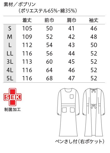 ●商品名:54-001 予防衣 長袖 レディス