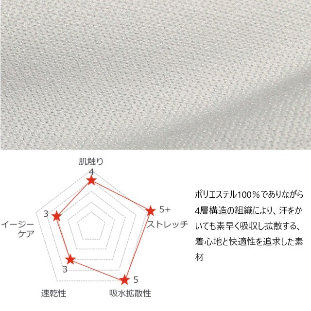 制電対策として縫製糸に静電気軽減糸(パチトリーナ)を使用し、しっかりしたハリコシ感としなやかな肌触りを両立しました。サイズによってネームタグの色が異なるので、サイズがわかりやすく、施設での管理もしやすいです。