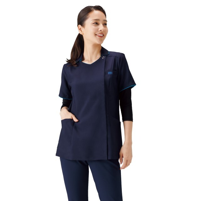 「襟なしのスクラブはダメ」という病院には襟ありのジップスクラブ。