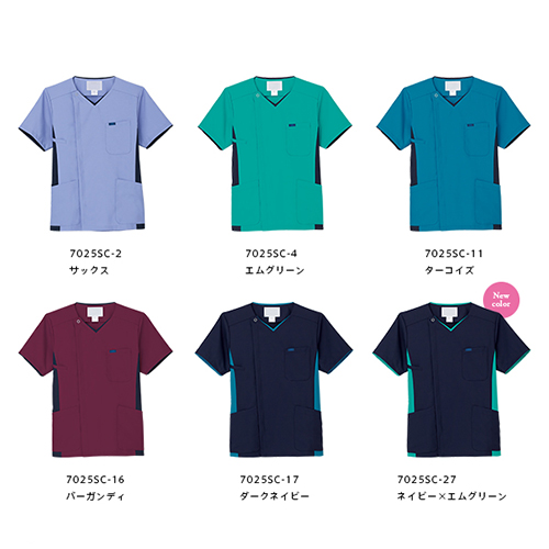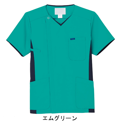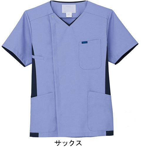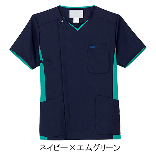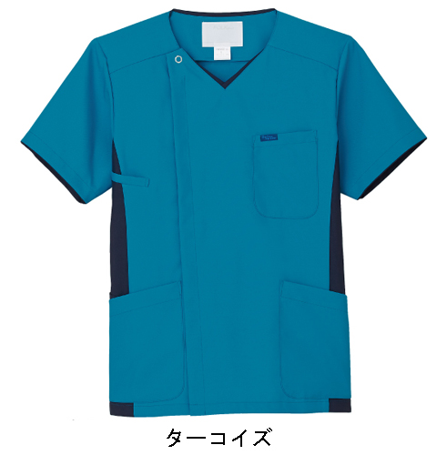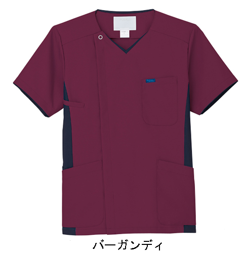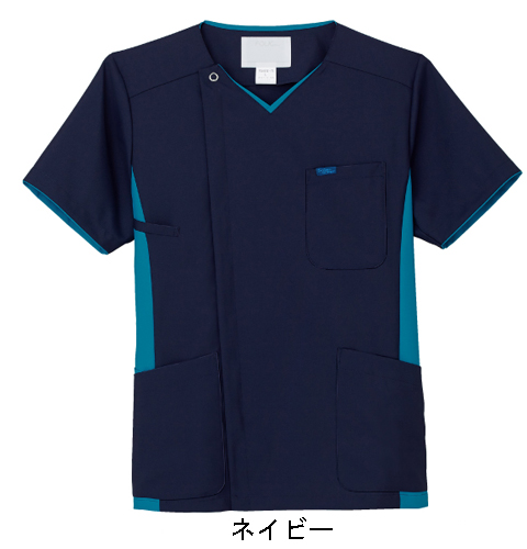 脱着がしやすく、ハリコシのあるサラリとした着心地の男性用スクラブ。