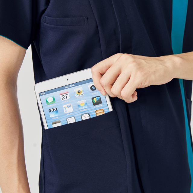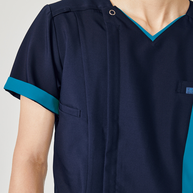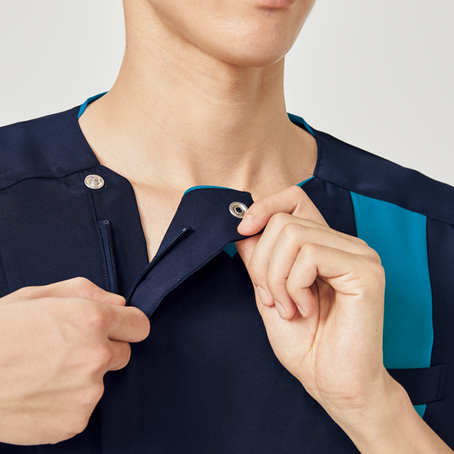 総合病院などで採用率の高い女性スクラブ7023SCと同配色デザインの男性版スクラブが登場。院内全体を同デザインのユニフォームで統一することができます。