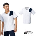 人気のホワイトスクラブのメンズジップスクラブ。羽織って着ることができるので、着脱がラクで収納性も抜群。髪形が崩れることもありません。伸縮性に優れたストレッチ性があるノンPUストレッチという素材を使っているので、動きの多い方でもスムーズに動けます。 左胸から肩、背面へ続く配色が印象的なおしゃれな男性用ジップスクラブ。男性用女性用と合わせて院内全体でコーディネイトでき、統一感を演出できます。 配色部分が濃い色なので、胸に挿す時にボールペンのペン先が出ていて生地にインクがついてしまっても汚れが目立ちません。