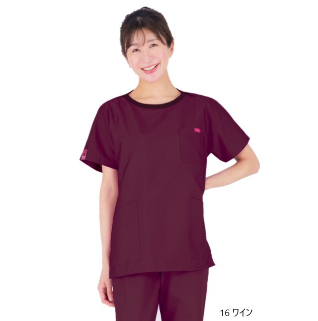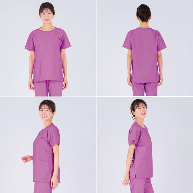 クルーネックにすることで屈んだ時の胸の開きも軽減。