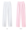 透けを防止するフルダル糸に静電気を抑える制電糸、肌に触れる生地の裏面は汗をすばやく吸収するコットン素材で履き心地抜群のレディスパンツです。