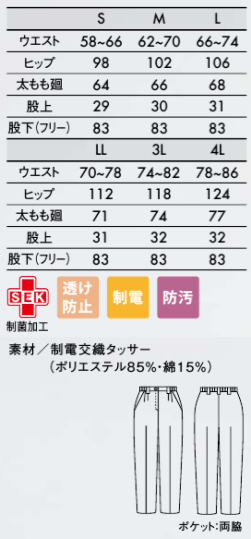 ●機能:SEK制菌加工、透け防止、制電、防汚