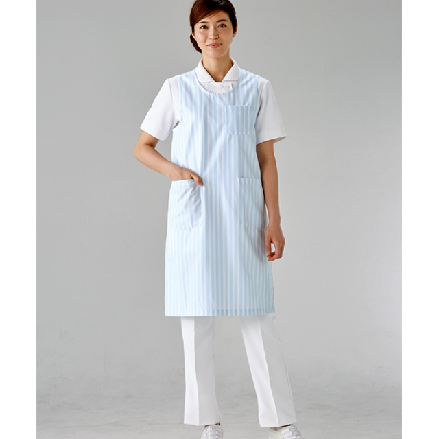 *同じストライプ柄の女性用予防衣エプロンもございます