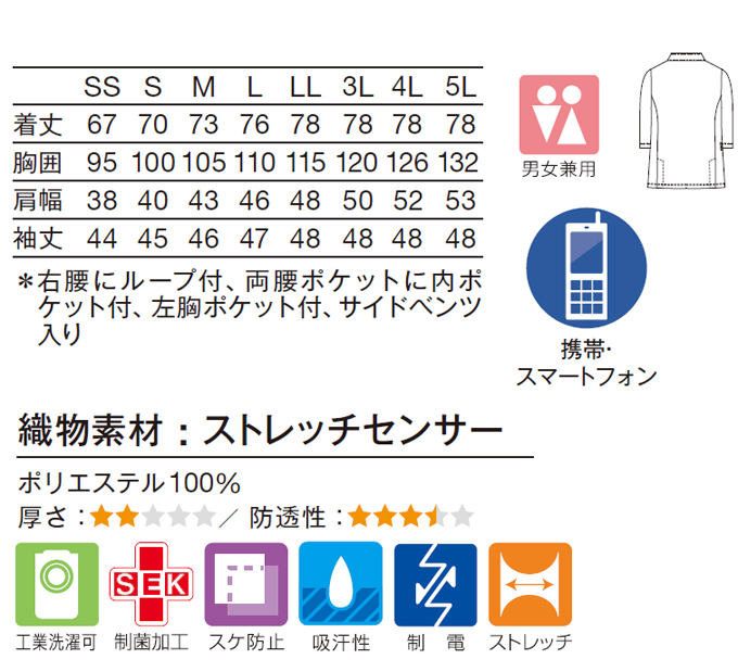 工業洗濯可・制菌加工・スケ防止・吸汗性・制電・ストレッチ
