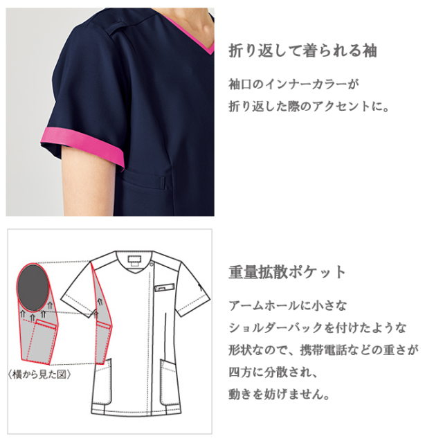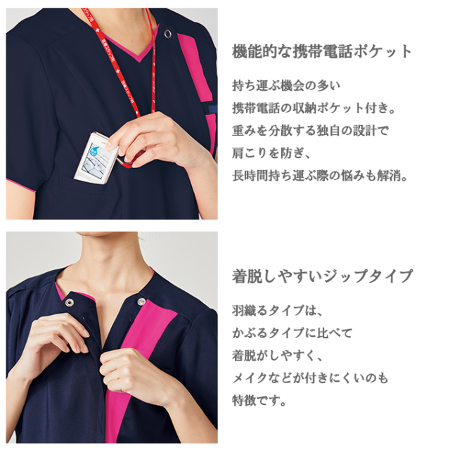 ●商品名:8501SCK フォーク カチオン染料使用 レディスジップスクラブ