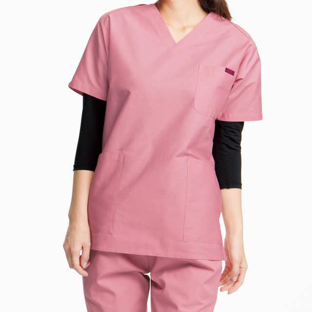 ヘアスタイルの崩れも少ない幅広で脱着しやすい襟ぐりは、どのスクラブにも合わせやすいデザイン。