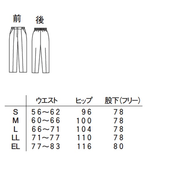 前身頃ウエストのタックでヒップや膝廻りにゆとり。ウエストはゴム入り。ポケットつき。
