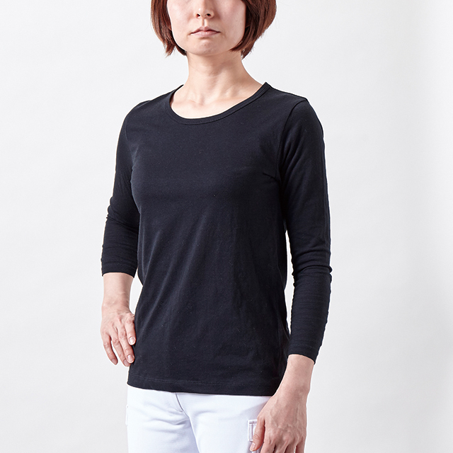 綿&ポリエステルの柔らかな肌触りと、体になじむほど良いフィット感。スクラブやケーシー、ポロシャツなどのインナーに、秋口から春先まで長く着用できます。