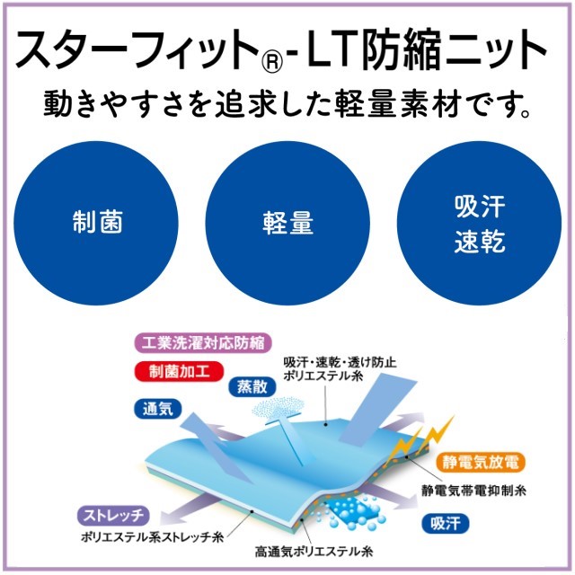 ●素材:スターフィット®-LT防縮ニット(ポリエステル100%)
