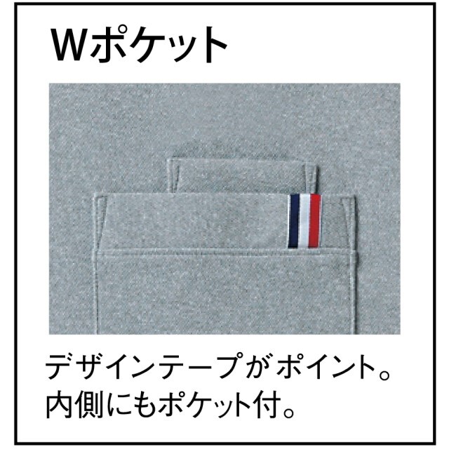 トリコロールのテープがアクセントの胸ポケットはPHSを入れるポケットが内側についたWポケット仕様。ぴったりサイズだから、PHSを落としにくいポケットです。