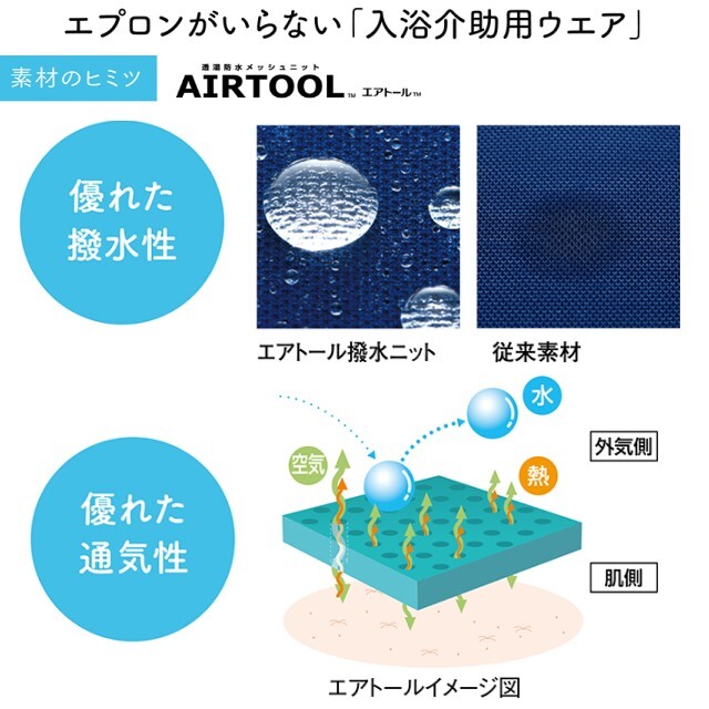 入浴介助の負担を軽減する快適機能素材のシャツ。