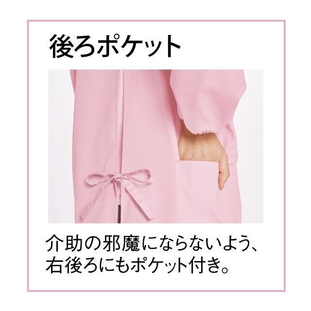 介助の邪魔にならないようフロントはすっきり、右後ろにもポケットをつけました。