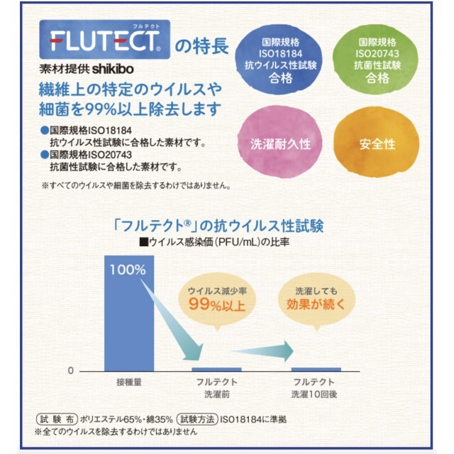 繊維上の特定のウイルスや細菌を99%除去