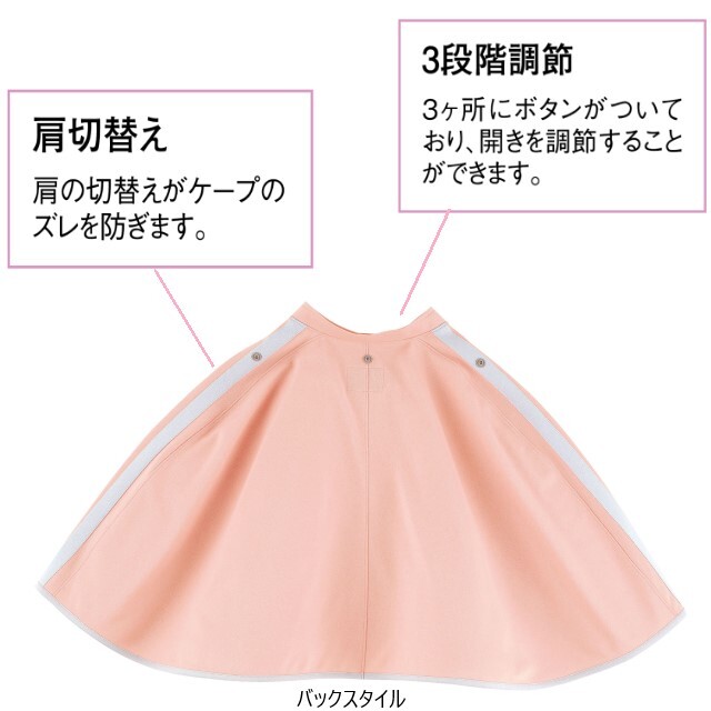 ●製品名:CR826ボタンで開き具合を調整可女性らしいデザインのマンモ用ケープ