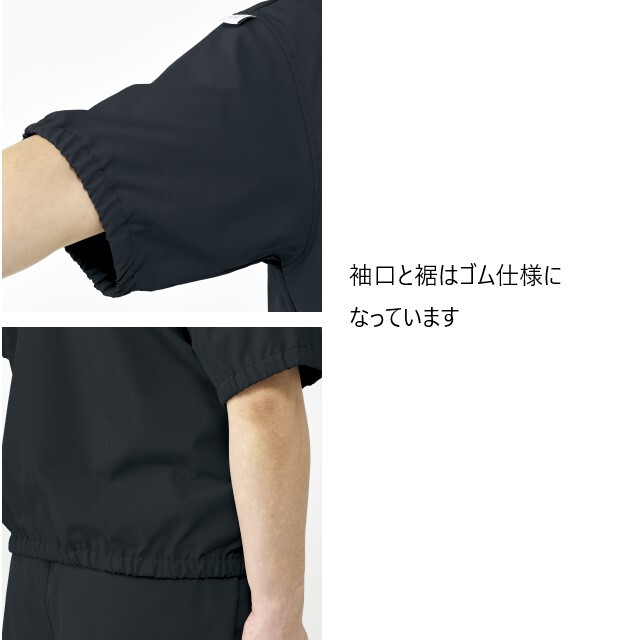 袖口と身頃の裾にゴムギャザー入り。