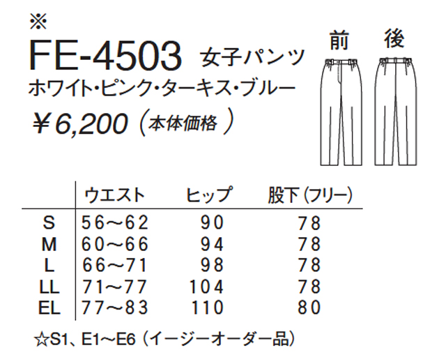 前後ダーツ・ヒップ、わたりピッタリシルエット・脇ゴム・ポケット無し。