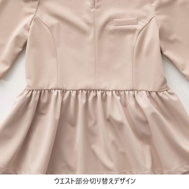 ウエスト切り替えのペプラムシルエットで着痩せ効果も抜群。