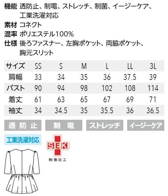 ●機能:透防止、制電、ストレッチ、制菌、イージーケア、工業洗濯対応