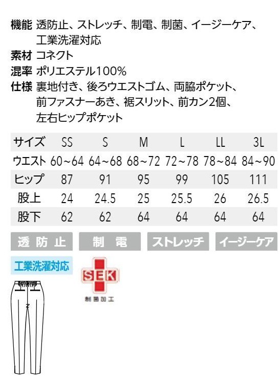 ●機能:透防止、制電、ストレッチ、制菌、イージーケア、工業洗濯対応
