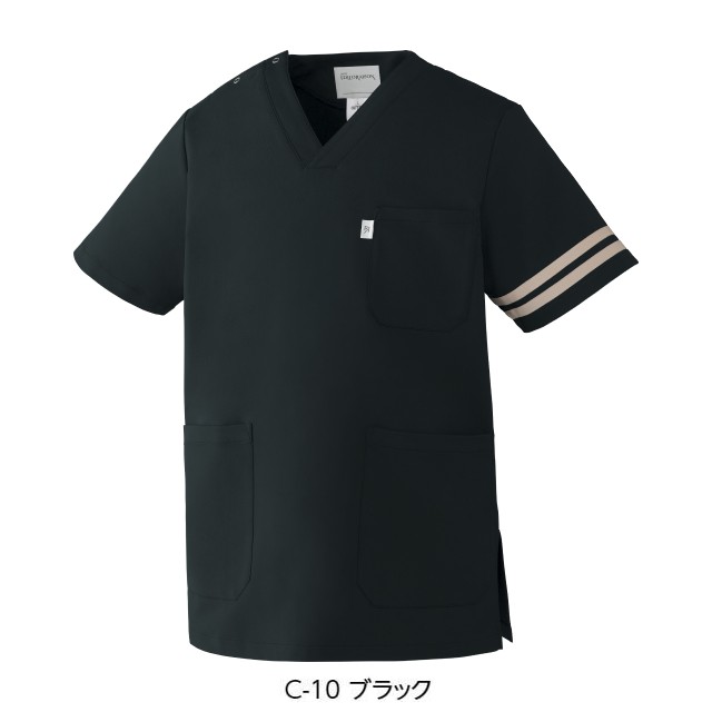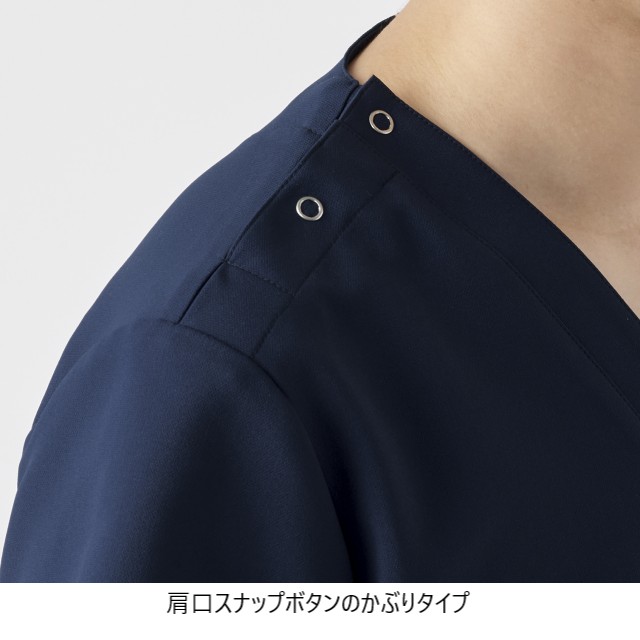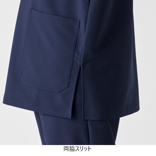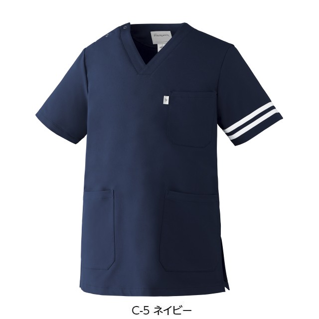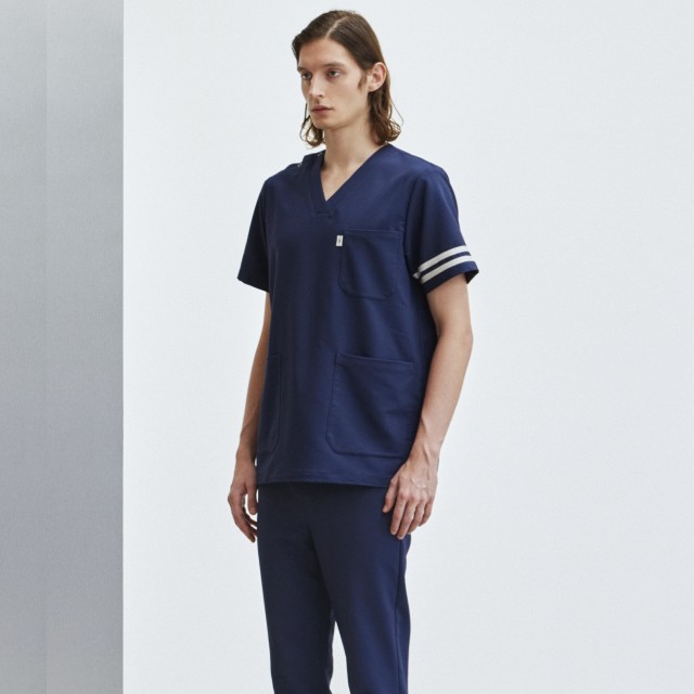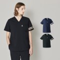 2 本のアームラインが清楚かつスタイリッシュな印象を与える男女兼用スクラブ。