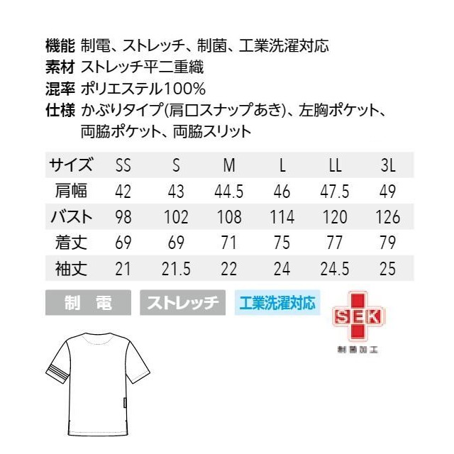 ●機能:制電、ストレッチ、制菌、工業洗濯対応