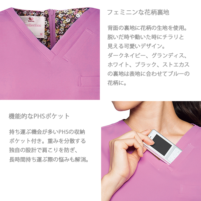 動きやすく、どんな姿勢でも女性らしいラインを魅せる着るときから脱ぐときまでずっと美しいスクラブです。