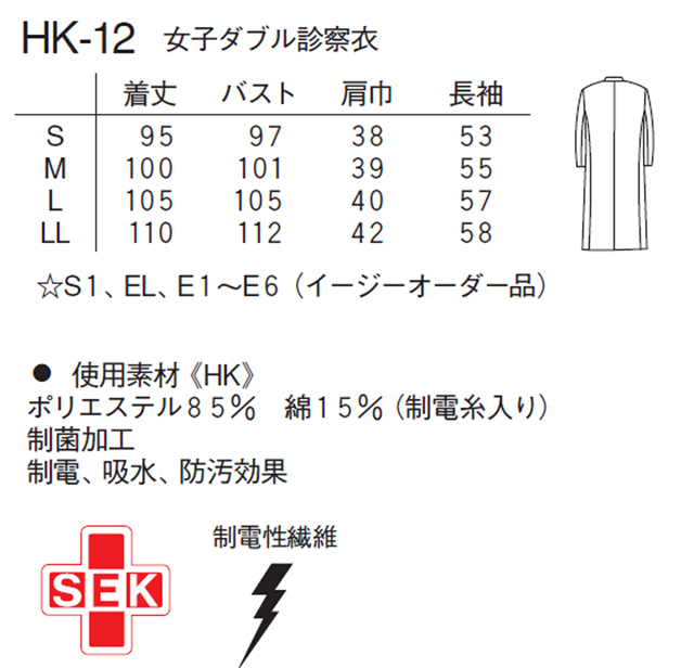HK12 ナガイレーベン 診察衣 ダブルボタン 女性用 長袖 制菌加工 制電 吸水 防汚効果 ポケット付き NAGAILEBEN 医療用 ドクター 医者 医師 女医 病院 レディース レディス 女子 ドクターコート 白衣