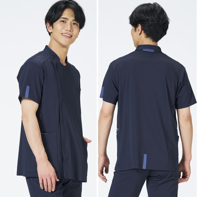 顔廻りを明るくするボタンや配色、機能性とデザイン性の両立をしたメディカルウェアです。