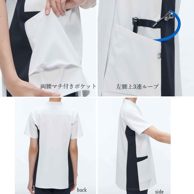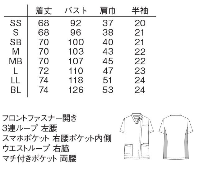 ●特徴:フロントファスナー開き、3連ループ 左腰、右脇、Wポケット 右腰、マルチループ 首元、ペンポケット 右腰、ストラップ留め 後ろ衿ぐり、シングルループ 右腰