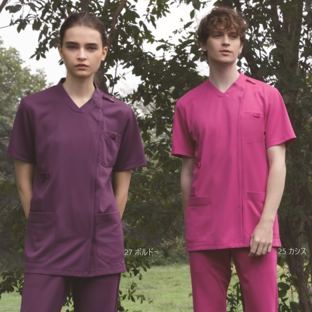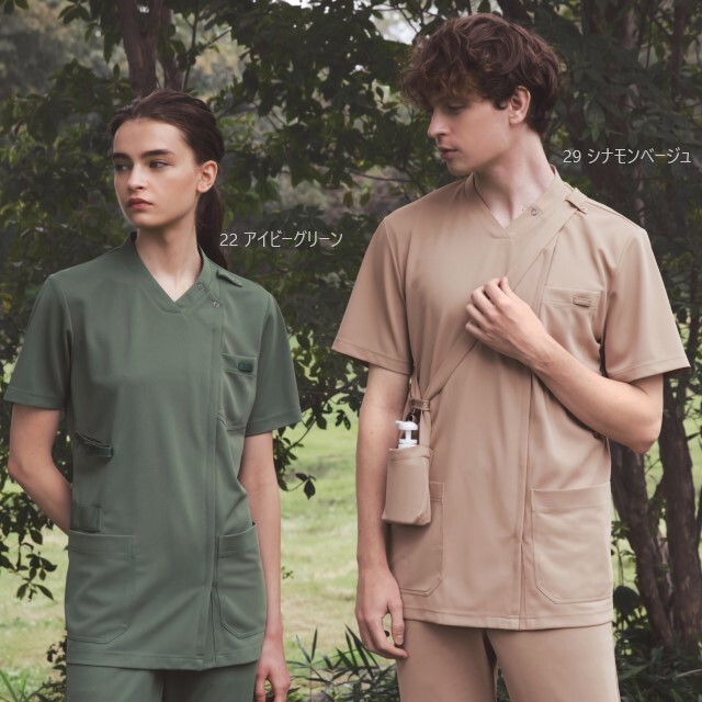 着る人を選ばない、誰が来ても美しいシルエットを追求した男女兼用のスクラブジャケットです。