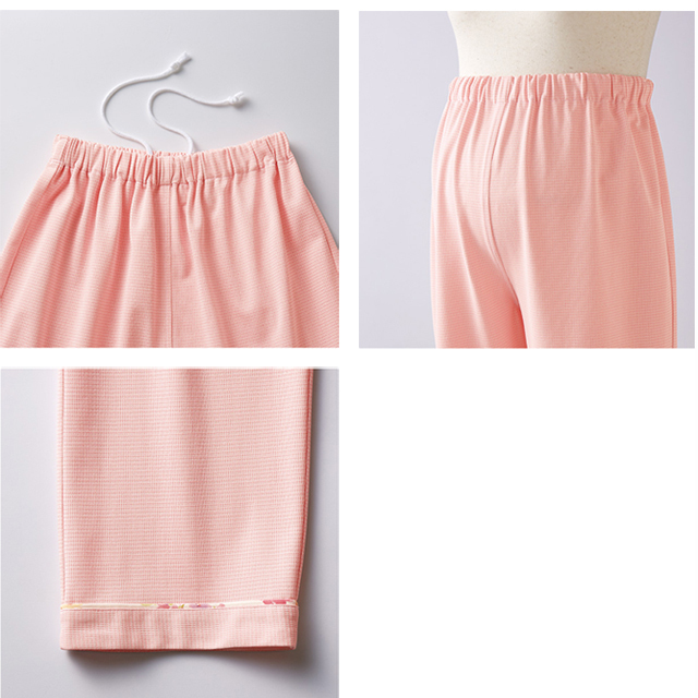 ウエストは総ゴム。ひもで調整も可能です。