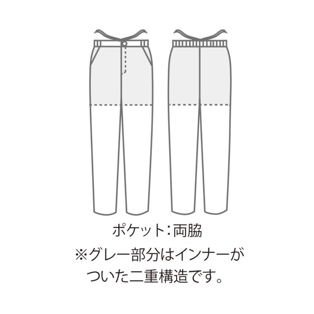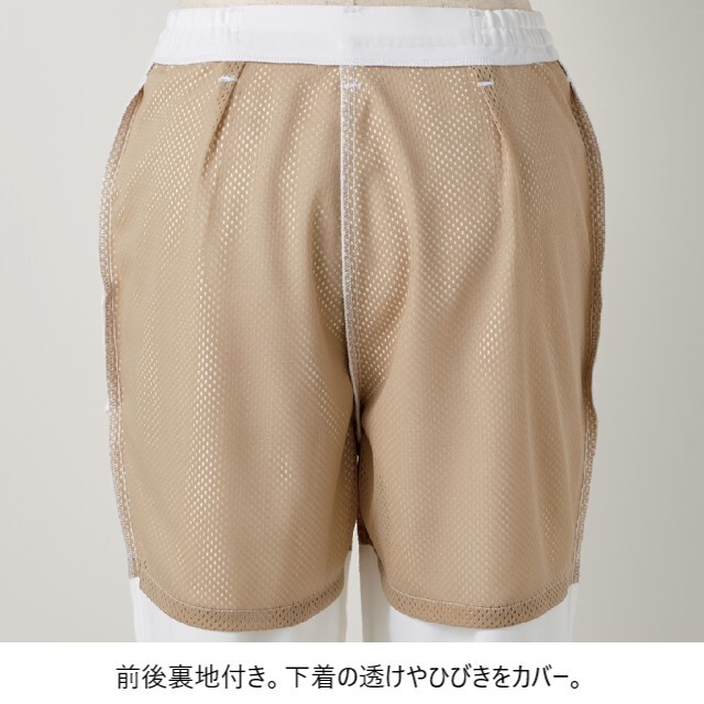 ウエストは後ろ半ゴム仕様・ひも入りで履き心地すっきりと快適です。