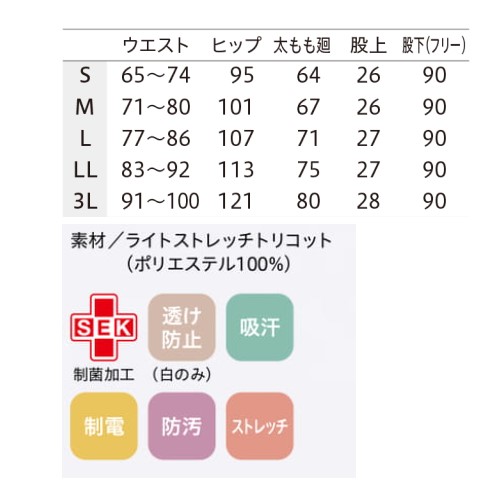 ●機能:制菌加工 透け防止(白のみ) 吸汗 制電 防汚 ストレッチ