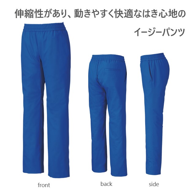 カラーバリエーションが豊富な6色展開のイージーパンツ。伸縮性があり、動きやすく快適な履き心地。