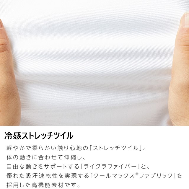 ●素材:冷感ストレッチツイル(クールマックスファブリック仕様)(ポリエステル80%レーヨン20%)
