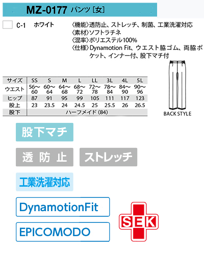 (透け防止 ストレッチ 制菌 工業洗濯対応 ウエスト脇ゴム 両脇ポケット インナー付 股下マチ付)